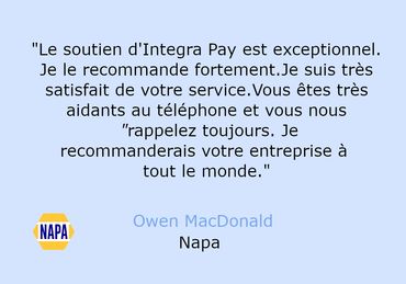 Nous travaillons fièrement avec des milliers d'entreprises de divers secteurs. Parmi les entreprises avec lesquelles nous collaborons, on trouve Integra Tire, Napa, 1-800-GOT-JUNK, Maaco, Toyota, Stihl, Honda, Benjamin Moore, Apple Auto Glass, Mikes, Fix Auto, OK Tire, Midas et Chrysler, toutes faisant confiance à nos solutions pour garantir des transactions fluides et sécurisées.